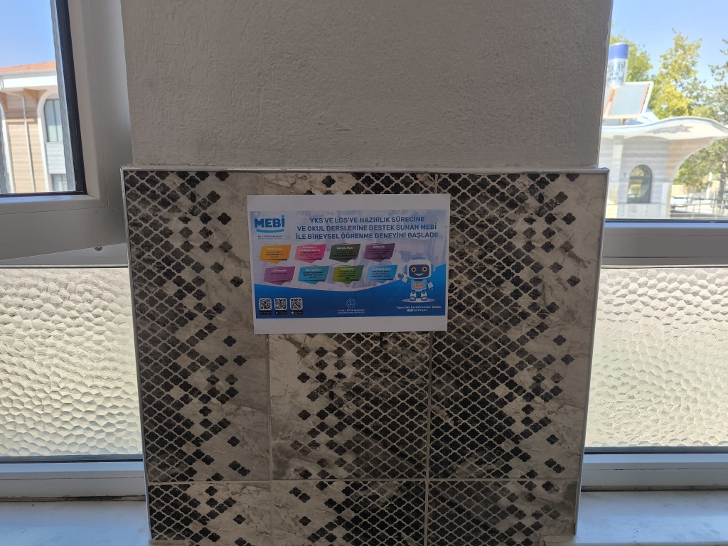 Okulumuzda MEBİ uygulaması tanıtım videosu öğrencilerimize izletilerek bilgilendirme yapıldı. Tanıtım afişleri okulumuz koridorlarına asılarak öğrencilere nasıl giriş yapabilecekleri konusunda bilgi verildi.